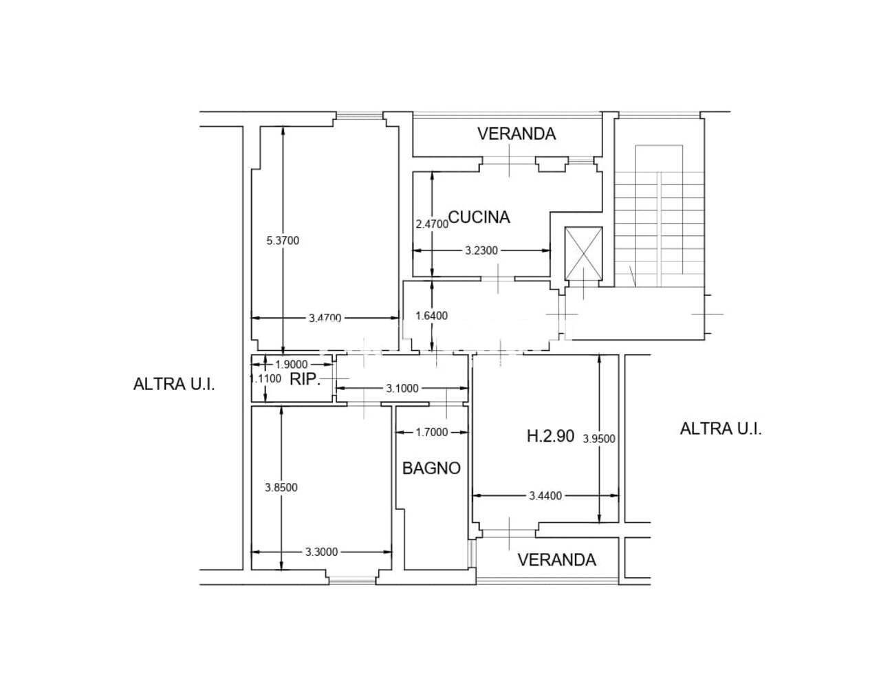 1 bagno, 2 camere, Ascensore, Balconi, Cantina, Cucina, Sala, Termoautonomo.